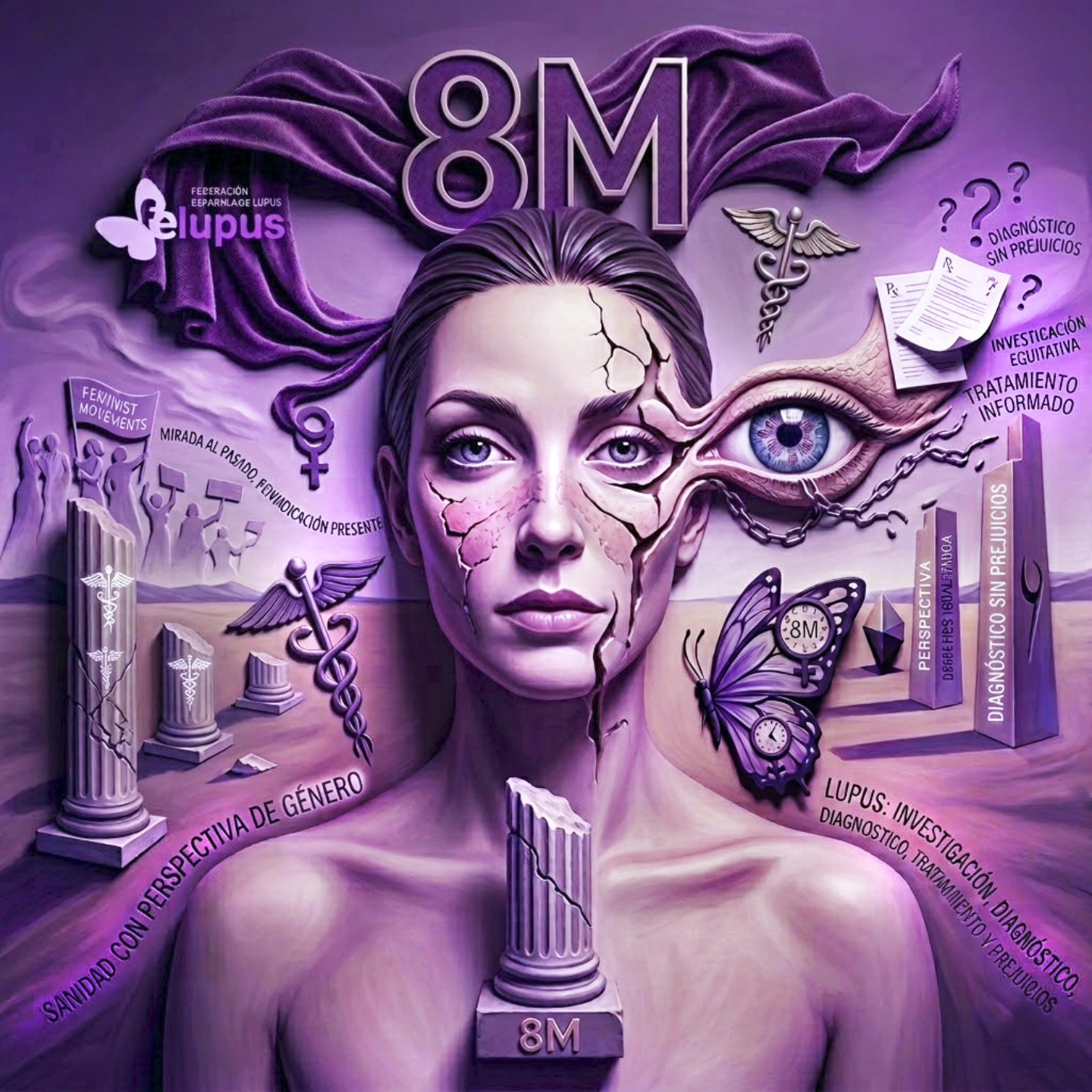 Desde la Federación Española de Lupus (FELUPUS) queremos compartir esta imagen surrealista que refleja el laberinto que recorremos las personas con Lupus, 90% mujeres. Un mundo donde la discriminación de género se filtra bajo el prejuicio y la cultura arcaica.