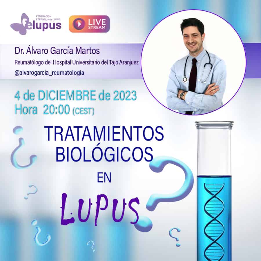 El Dr. Álvaro García Martos ( @alvarogarcia_reumatologia ) nos hablará de los famosos Tratamientos Biológicos en LUPUS (Belimumab, Anifrolumab y Rituximab) cómo favorecen el control del LUPUS y cuando