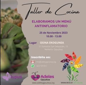 El próximo sábado 25 de noviembre, nuestros compis de Lupus Gipuzkoa han preparado un Taller de Cocina elaborando un menú específico antiinflamatorio.